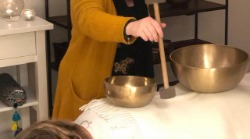 Vila och återhämtning i den mest effektfulla och enklaste meditation man kan tänka sig. Ingen tidigare erfarenhet av mediterande behövs. Du får ligga på en mjuk madrass insvept i ett par filtar och bara lyssna på de Tibetanska klangskålarnas klanger och toner. I början går vi igenom en så kallad kroppsscanning, en avslappningsövning där du guidas att fokusera på att slappna av kroppsdel för kroppsdel. Detta gör att du kommer bort en stund från ”tankebruset” för att landa i ”här och nu”. Därefter följer ett spelprogram utarbetat att först ge djupare och djupare avslappning för att senare övergå till toner och vibrationer som ska ge dig ny kraft och energi. Svårare än så är det inte! Du får under meditationens gång vända och vrida på dig som du vill och faktiskt rent av somna om det är vad du behöver.